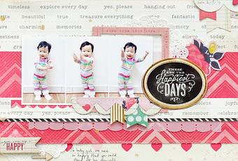 We captured these photos back in September last year when she could stand up by herself. We were so excited & proud of her milestones! That definitely keeps me going on to creating all these special memories into layout & project life! Absolutely love the paper at the background that is full of beautiful words that totally fit my lil girl!