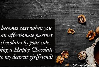 - Life becomes easy when you have an affectionate partner and chocolates by your side. Wishing a Happy Chocolate Day to my dearest girlfriend!