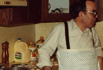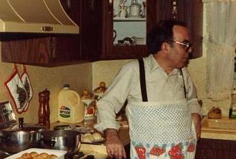 Real Dads mind the Arancini during New Year’s Eve celebration prep and proudly wear silly aprons while they do it cause wearing the silly apron is better than getting a tough to remove grease stain on their shirt.