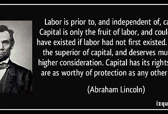 Labor is prior to, and independent of, capital. Capital is only the fruit of labor, and could never have existed if labor had not first existed. Labor is the superior of capital, and deserves much the higher consideration. Capital has its rights, which are as worthy of protection as any other rights.  - Abraham Lincoln