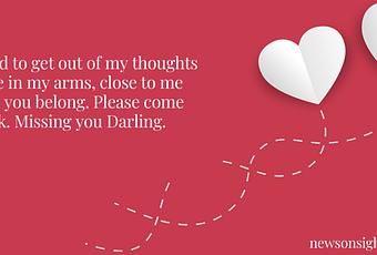 - You need to get out of my thoughts and be in my arms, close to me where you belong. Please come back. Missing you Darling.