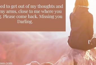 - You need to get out of my thoughts and be in my arms, close to me where you belong. Please come back. Missing you Darling.