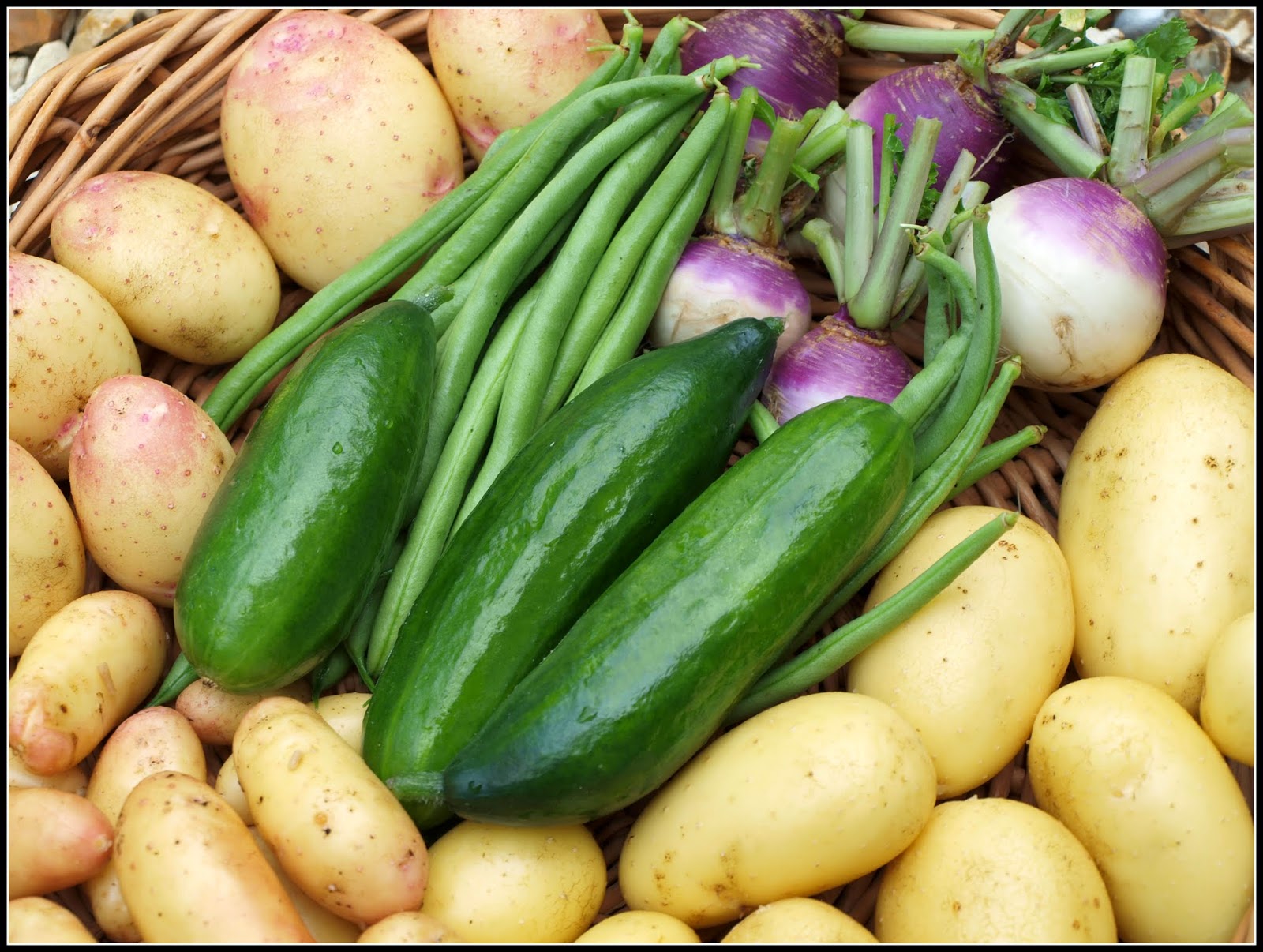Behind the cucumbers you can see some "Cobra" Climbing French Beans - a batch of about 180 grams. Regular readers will know that this is my favorite variety of French Bean, one which I have grown every year for many years.