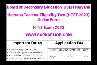 - माध्यमिक शिक्षा बोर्ड बीएसईएच, हरियाणा ने हरियाणा शिक्षक पात्रता परीक्षा एचटीईटी 2023 जारी की। अधिसूचना और दिसंबर 2023 एचटीईटी परीक्षा के लिए ऑनलाइन आवेदन पत्र आमंत्रित। उम्मीदवार 30/10/2023 से 10/11/2023 तक ऑनलाइन आवेदन कर सकते हैं।