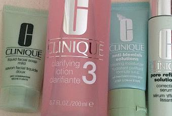 - clinique clarifying lotion number 3: my skin type is oily combination, but then i get really dry cheeks occasionally, so im seeing what the number 3 does to me, if its too strong ill drop down to the number 2, but this is the liquid exfoliator that you use after the soap, £16