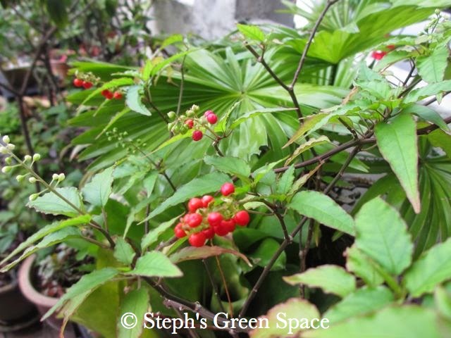 Red-berried, Rivina humilis brings outstanding color to the garden. Red happens to be the color of Christmas! Glad to see these fruits though the bush has not been growing as lush as I wanted.