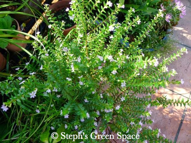 Cuphea hyssopifolia (Mexican Heather) is the other bush that needs a prune soon. Actually I have been delaying the cut as the shrub has been flowering so well.