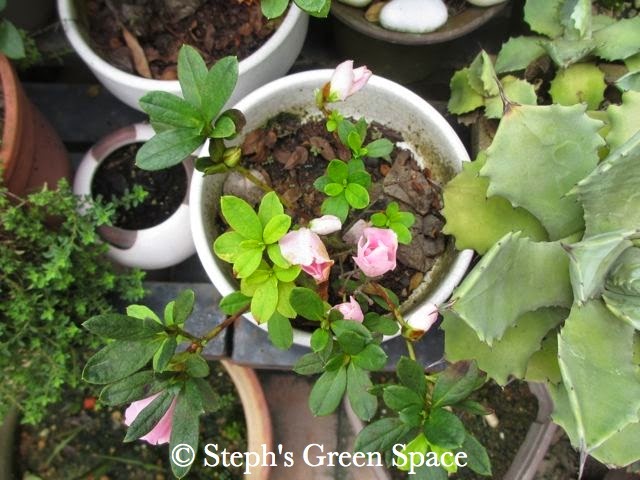 My pink dwarf Azalea has at least six flowers on the little bush!