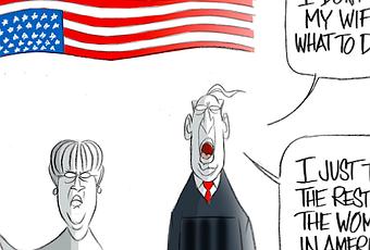 He Tells Women What To Do (Except His Wife) Political Cartoon is by Ann Telnaes in The Washington Post.
