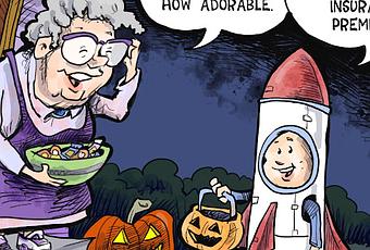 Health Insurance Premiums As A Halloween CostumePolitical Cartoon is by Phil Hands in the Wisconsin State Journal.