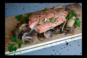 - To serve, plate the salmon on top of the mushrooms, and sprinkle over the chopped parsley. Enjoy!