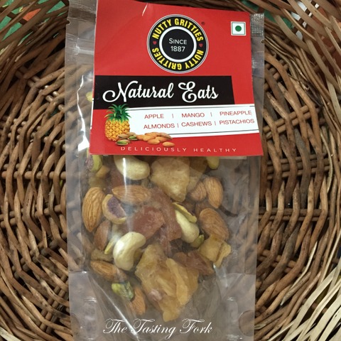The other snacks that I tried were Bombay Mix and Natural Eats. Bombay Mix consisted of pumpkin seeds, chana, sunflower seeds and other such stuff that is super high on health and nutrition, and the Natural Eats had dried apple, mango, pineapple, cashews, pistachios, etc. As bizarre as it may sound, the Natural Eats pack is the most addictive 'dry fruit' based snack I've ever laid my hands on. I cannot describe how good it is- it's just sensational (with the dried mango, apple and pineapple being my favorite components)! The packaging for these is done in an airtight zip pouch kind of packet that once opened, can be closed again with the zip.