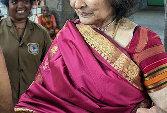 This evening at Thiruvallikkeni Sri Parthasarathi swami temple, saw this graceful nonagenarian walking out – she needs no introduction and visits the temple often !