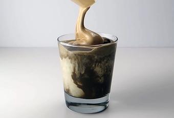 - Scoop the frothy coffee onto your iced hojicha and stir before drinking.