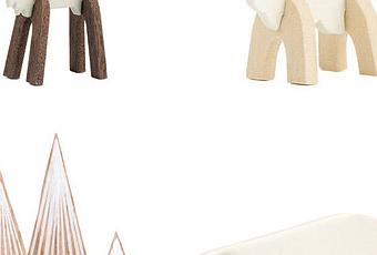Canadian ceramicist Paige Russell's Müzo collection features a mix and match of porcelain and wood figurines—woods, caribou, sheep, and polar bear—that make a wintry, minimalist statement on your mantle.