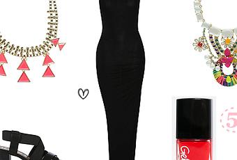 1. Dress 2. Necklace 3. Necklace 4. Shoes 5. Nail Polish