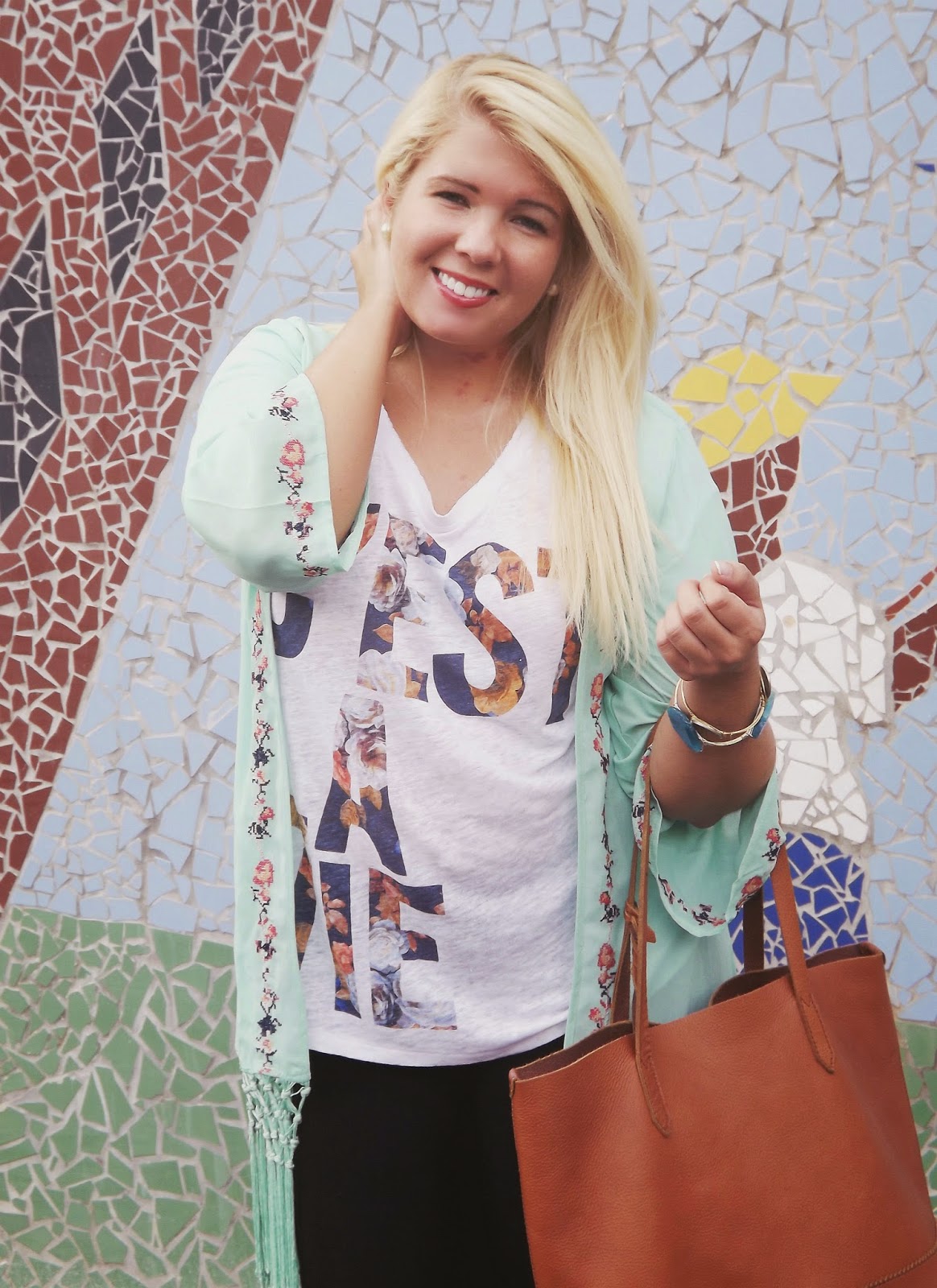 Outfit: Kimono- DressUp Boutique, Linen Tee- J.Crew, Skinnies- J.Crew, Sandals- Cato Fashions, Purse- J.Crew Downing Tote, Bangle 1- Ellie and Ollie, Bangle 2- Bourbon and Boweties Holy Kimono! This kimono I picked up at the SBS conference two weekends ago from DressUp Boutique is fantastic. The fringe just makes it and the color compliments so well. Paired with the linen tee that I picked up from J. Crew, it just went so well.