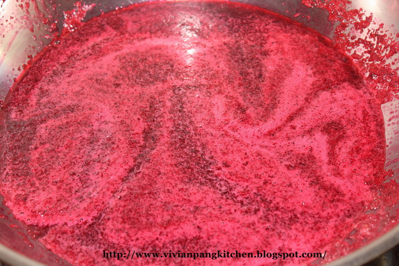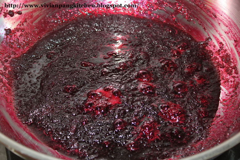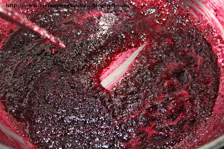 Methods : 1. Wash the red fleshy calyx till clean. Tear into small size. Blend roselle together with water till fine. * I work in 2 batches.2. Pour the blended roselle into wok/ pot. Add in sugar and cook at medium low heat till roselle mixture become thick. *Stir occasionally especially during end of process. *It tooks about 25 minutes for it to thicken