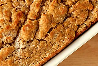- Pour the remainder of the butter over the top of the mixture in the loaf pan.