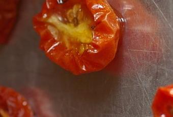 - Heat oven to 250 degrees. Arrange tomato halves cut side up on a baking sheet. Whisk together honey oil, thyme, garlic, salt and pepper in a bowl . Drizzle over tomatoes. Bake until tomatoes are half dried 2 hours.
