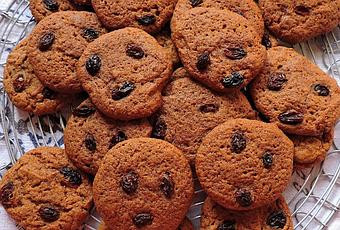 MONKEY FACE COOKIES - Children love these cookies. Partly because of the name, and partly because they are delicious! It's fun to pick the raisins off and eat them separately . . . its fun to eat them all together. It's just fun to eat them! A simple molasses sour milk cookie, topped with raisins. They also freeze very well.