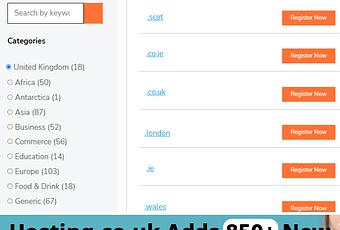 Hosting.co.uk has expanded their offerings to over 850 extensions with a press release out today. While geared more to businesses than the domain investor it’s another place to occasionally check for registration deals.