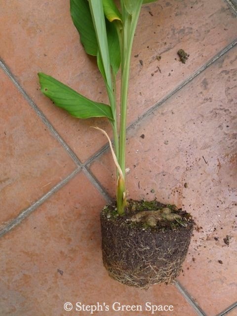 The turmeric (Curcuma longa) plant that I planted in May -- its roots have already filled up the original pot. The plant has been transplanted to a bigger pot now.