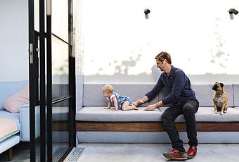 The concrete courtyard offers the family, who four months ago welcomed a daughter, the option to extend their living space outdoors.