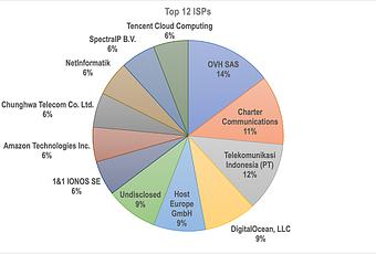 - Chart 2 shows the top 12 ISPs responsible for the malicious IP addresses. As shown, the highest number of IP addresses (5) are under OVH SAS’s management. The remaining 61 IP addresses were distributed across the same number of ISPs.