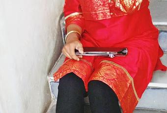I wore my gold ear rings with a Red coral drop and pearls. I wore bronze golden bangles to go with the whole ethnic theme.