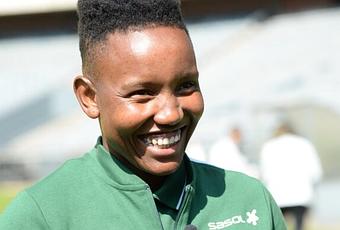 Andile Dlamini started playing professionally after playing with the South Africa women's under-20 national team; she was then selected for the team. Nicknamed "Sticks", she previously played for Phomolong Ladies and is currently for Mamelodi Sundowns.