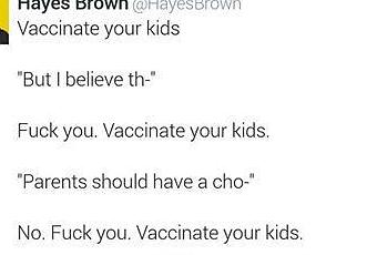 There has been so much rubbish from the right wingnuts, including Rand Paul's totally bogus claim about severe 'mental disorders' caused by vaccinations, that is reminiscent of Michele Bachmann's LIE about HPV Vx and mental retardation.If the language below seems a bit vulgar and excessive, then consider it in the context not only of political liars on the topic of vaccinations, who are blatantly trolling the radical right anti-vaxxers for votes, but also in the context of those who KNOW better, and genuinely do not give a flying .....FIG.....about the painful, debilitating illness or death of you, or your child, or an elderly person in your family that you love, or those with illnesses or injuries that compromise their immune system that you cherish.