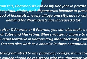Apart from this, Pharmacists can easily find jobs in private nursing homes, hospitals, clinics, and dispensaries because at present there is a flood of hospitals in every village and city, due to which the demand for Pharmacists has increased a lot.