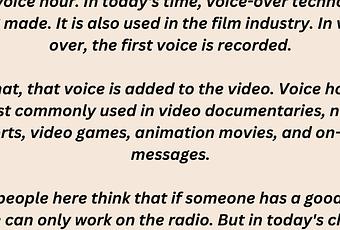 Actions happening at the same time have to be described in the voice hour. In today's time, voice-over technology is being made. It is also used in the film industry. In voice-over, the first voice is recorded.
