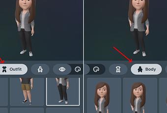 - Next up, you will see loads of options to personalize your avatar. You can choose different style enhancement options such as outfits, body type, eye shape/ color/ makeup, eyebrow shape/color, and more. You can even change the nose shape, mouth & lips color, face shape/ markings/ lines, facial hair & color, earrings, and more.