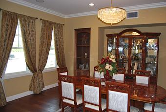 Give soft touches: In a room that’s otherwise filled up with hard surfaces, use textiles that add warmth and soften the mood. Start with a carpet for defining the dining area. The carpet you select must extent 2’ from edge of the dining table on all the sides so that back legs of chairs will be on the carpet when guests sit. Upholstered slipcovers or chairs are even great for introducing pattern and color. If you want, you can also refresh your wood chairs with soft and bright cushions, which are easy to switch out when inspiration strikes. Draperies that compliment the entire décor of the room must be your choice.
