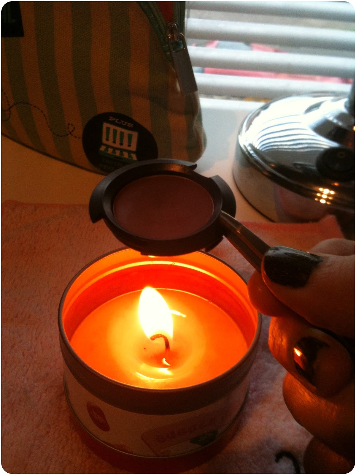 Once this happens or it's just hot enough, peel the label off and stick it to the back of the newly popped pan shadow.