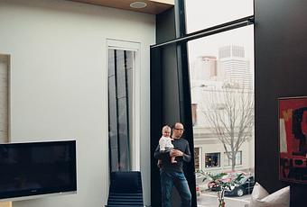 In this Portland house, light enters at all levels. Recessed into the building’s superstructure, this room’s skylight infuses the home with atmosphere, providing an unobstructed view of the neighboring church.