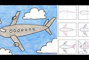 Here’s a relatively simple way to draw an airplane, which I had good results with earlier this year.1. Fold a drawing paper in half twice to get the guide lines shown on my diagrams. Follow the drawing steps as shown, adding as much detail as desired.