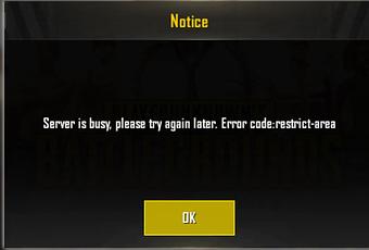 “The server is busy. Please try again later. Error code: “restricted area”