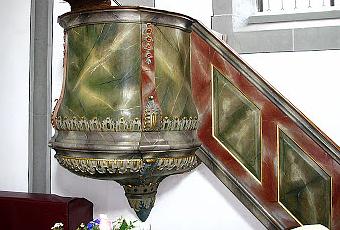 Pulpit of the Gallus chapel in Greifensee ZH, Switzerland. Wkipedia Commons