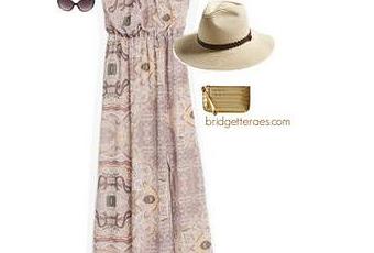 Tip #4- Use functional accessories This printed maxi dress from Mango doesn't need a lot of accessories to look finished. However, when choosing accessories, when it is really too hot to accessorize, choose ones that function. For example, a sun hat, like this one from Nordstrom, not only gives the outfit some polish but also shields from the sun. Sunglasses, like these from Fossil, do the same thing. They finish the outfit and protects the eyes. The outfit is finished with a pair of brown flat sandals from Macy's and gold wristlet from Relic.