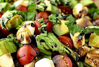 Step 2: In a bowl, mix tomatoes, avocado, mozzarella cheese, salt, pepper, olive oil, garlic, chicken and basil well. Continue Reading... Avocado and Chicken Caprese Salad Recipe