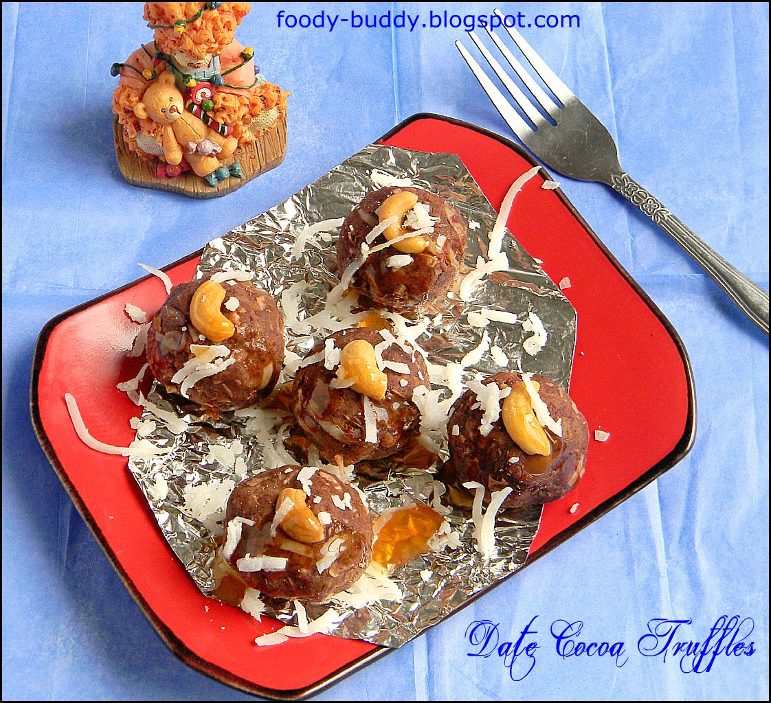 Did you like this truffles ? Yesterday I made dates syrup at home, so I got some leftover date meat which has more fiber and nutrients in it..I don't want to waste that so my husband gave me this idea. Believe me, the taste was too good..They are quick to make, so sweet and tasty and easy to pop in your mouth one after the other! They are naturally delicious as they are - just dates, cocoa and coconut. Simply perfect! They come together in minutes. If you get sugar cravings, this is a best solution. Try this truffles and let me know your feedback.