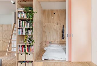 Peach + Plywood: In a petite Melbourne family home, peach perfectly complements plywood.