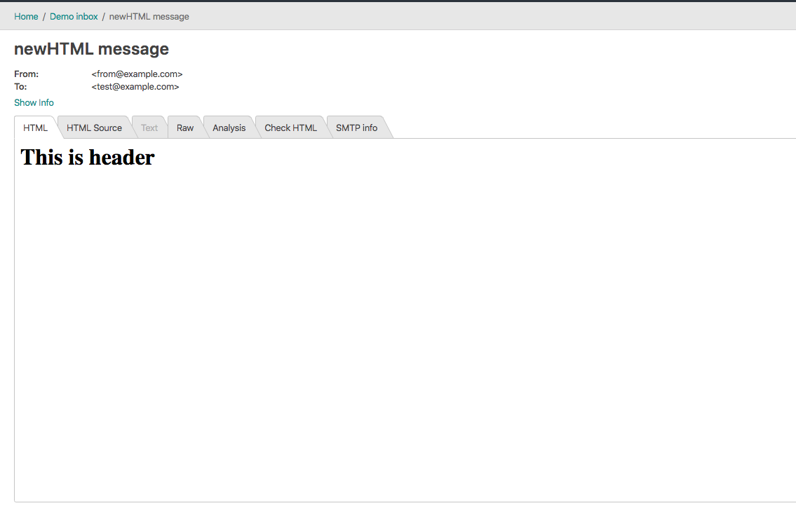 messagesetContent( "<h1>This is header</h1>", "text/html");