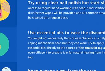- Try using clear nail polish but start slowly-It may sound odd, but those with anal skin tags absolutely swear by this treatment. You want to start with a small amount just to be sure that it doesn’t cause any sort of reaction. You simply take a small amount of clear nail polish, with no color or fillers to keep it pure and simple. It’s a simple trick about how to remove the anal skin tags removal.