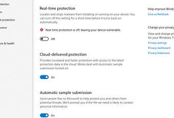 Use the toggle switch to turn off Real-time protection, which will disable Windows Defender from running automatically and click OK when prompted. Note that this setting only turns off for a short time before it turns back on automatically.