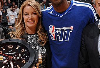 Ricardo Guadalupe, CEO of Hublot, posed with Lakers star Kobe Bryant and Lakers Executive Vice-President Jeannie Buss on the court of the Laker’s game Wednesday in announcing the partnership.