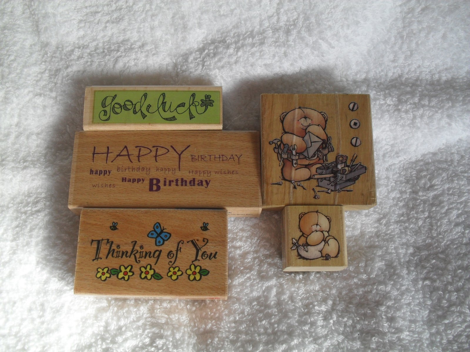 Wooden Stamps:Goodluck - NEW - £2.00Happy Birthday - used - £1.00Thinking of you - used - £1.00Forever Freinds - tool box - used - £2.00Forever Friends - baby - used £1.50